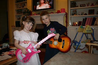 Abby and Noah both got guitars for Christmas and were rockin' tonight!! I loved that Abby wanted to wear her new pink dress that I got at Goodwill for $1.15. She looks really cute in it!! They both love jammin' on their new guitars. Uncle Jason tuned Noah's up for him!! It's so cool!!